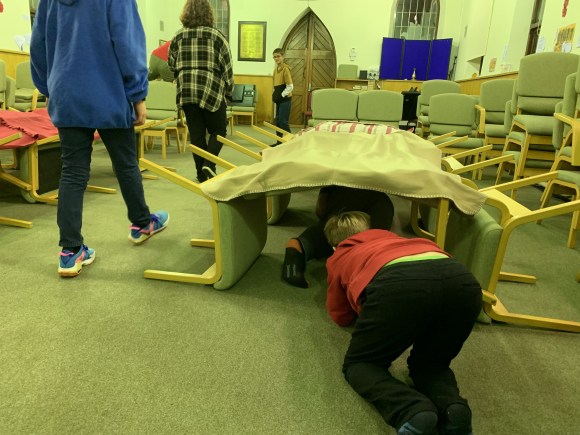 Blind folded obstacle course is just one of the many team building games we play